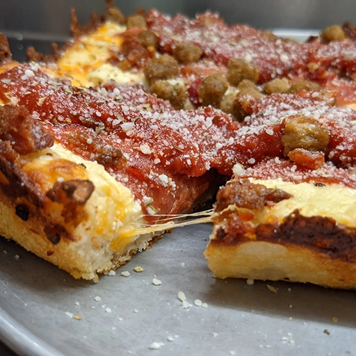 Experience an unforgettable culinary journey with the Motor City Detroit Deep Dish Pizza.